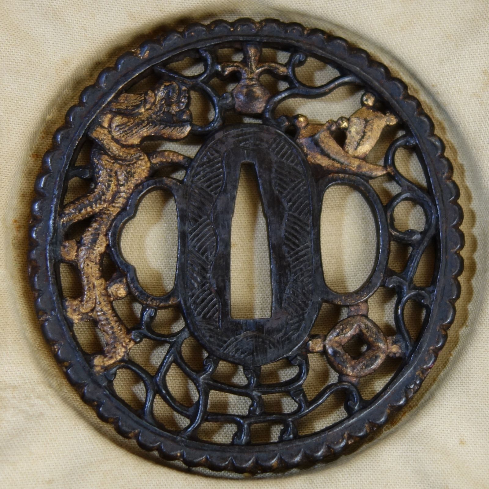 | 商品の特徴 | 刀装具鍔武具日本刀骨董アンティークコレクション。刀装具鍔武具日本刀骨董アンティークコレクション。刀装具鍔武具日本刀骨董アンティークコレクション。刀装具楕円形の鍔骨董品ご検討よろしくお願いいたします。。刀装具鍔武具日本刀骨董アンティークコレクション | ||